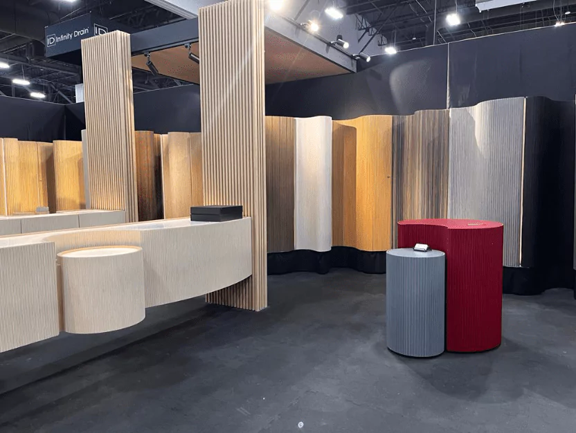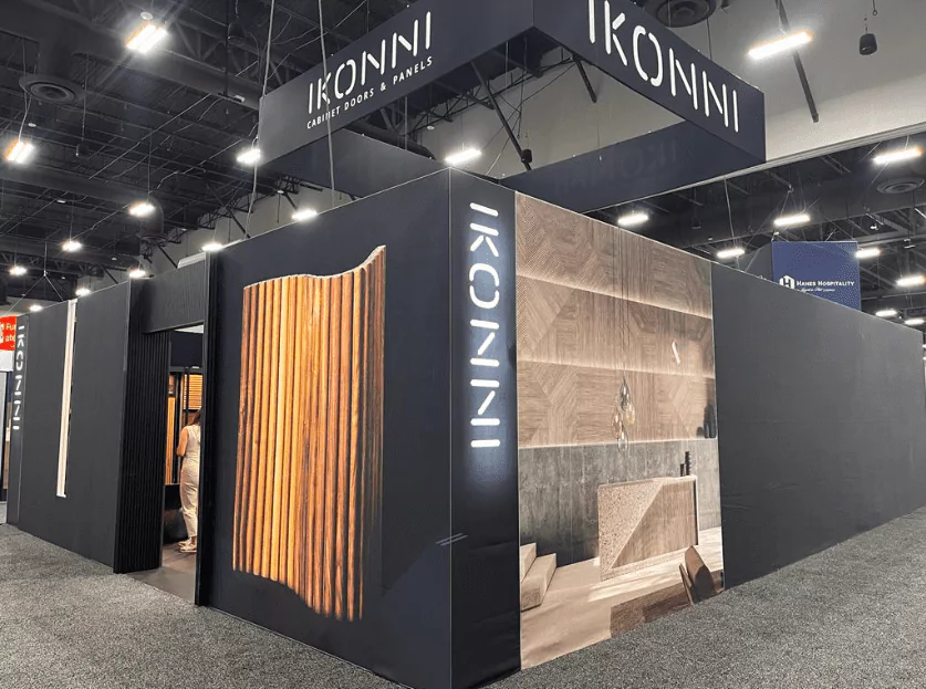 IKONNI had a successful exhibition at HD (Hospitality and Design) Expo 2023, winning IIDA’s and HD Expo’s Best Wallcovering Award for the Milled and Flexible Panel collections, as well as the Best Booth Award for an impressive product display. During the Expo, IKONNI introduced IKONNI ACOUSTIC, an innovative new product line containing ceiling tiles and wall panels in a variety of finishes and with superior sound absorption quality. IKONNI’s booth was home to a celebration with Italian wine, charcuterie, and a live violinist.